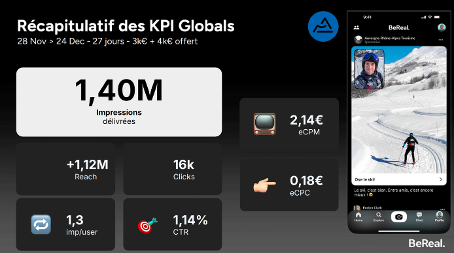 Nous avons profité d’une opportunité offerte par BeReal sur la fin d’année 2025 : Notre budget media a été abondé par BeReal sur cette période 3K€ + 4K€ offerts