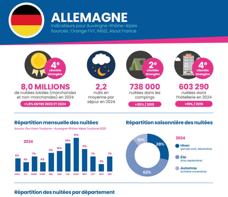 Auvergne-Rhône-Alpes Tourisme met à disposition de ses partenaires une nouvelle publication dédiée aux marchés internationaux (européens et long-courrier), conçue comme un véritable outil d’aide à la décision et à l’action. Cette