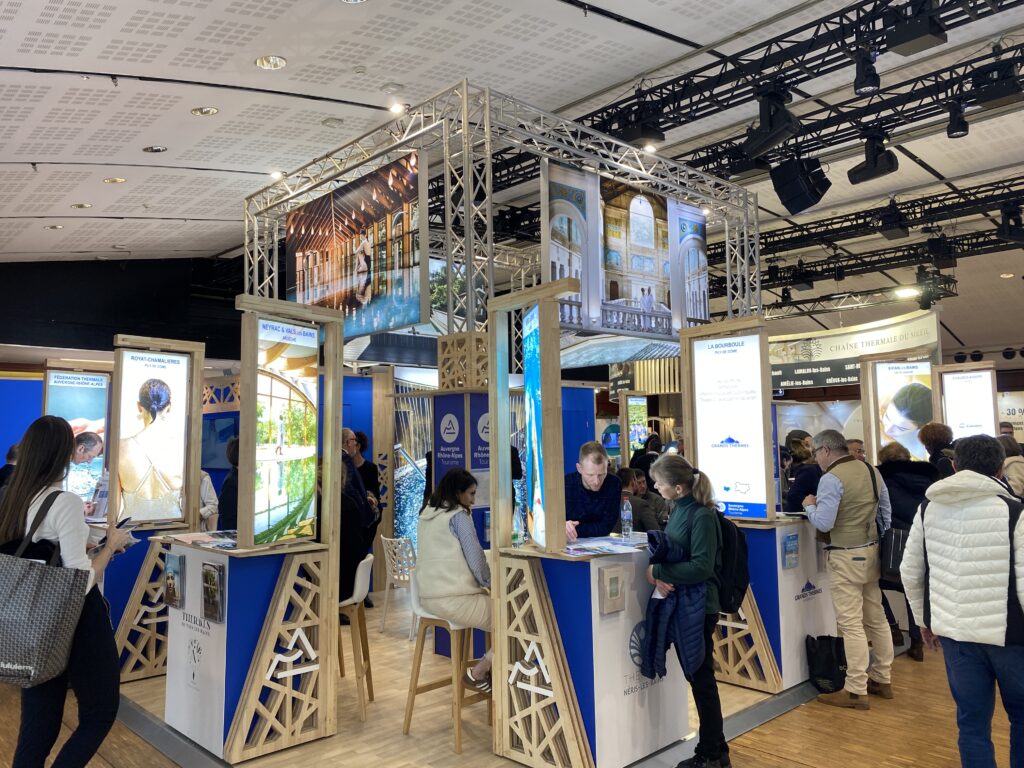 Stations présentes sur le stand régional à Paris : le Domaine de Marlioz – Aix-les-Bains, Vals/Neyrac, Evian, La Bourboule, Néris-les-Bains, Bourbon-Lancy, Chaudes-Aigues, Bourbon l’Archambault et Royat-Chamalières.